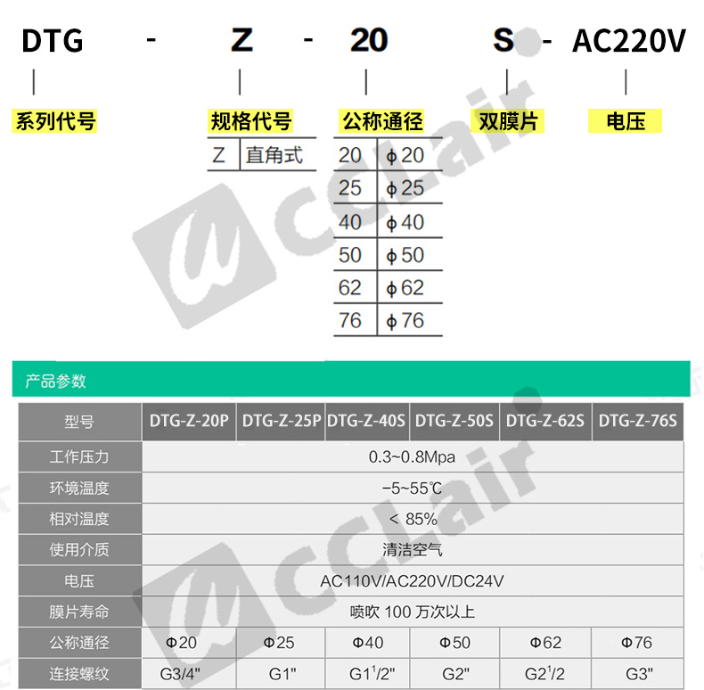 DTG-Z-15,DTG-Y-50S,DTG-Z-20,DTG-Y-62S,高原型DTG直角式脈沖閥