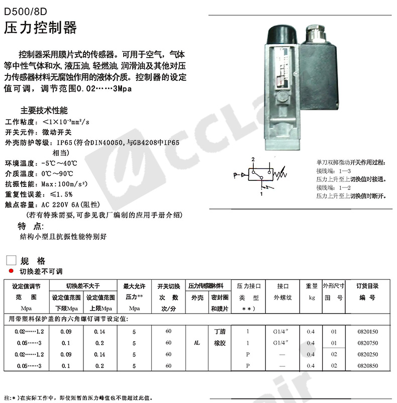 0815107,0813507,0815207,0813607,壓力控制器 D501/7DK切換差不可調(diào)