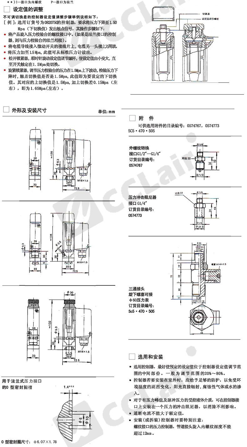0815100,0813500,0815200,0813600,壓力控制器 普通 D501/7D切換差不可調(diào) 0815300,0813700,