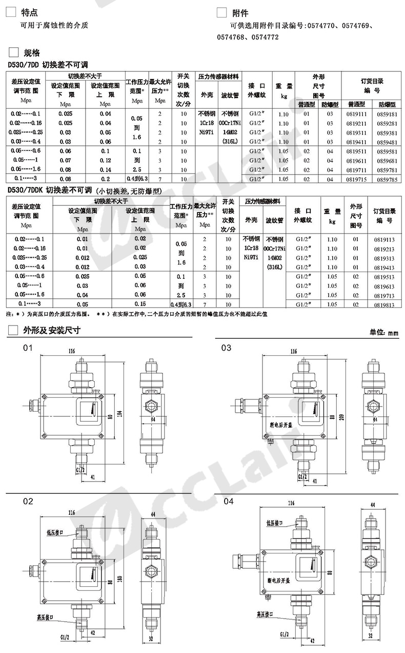 型號(hào): 防爆 D530/7DD切換差不可調(diào)