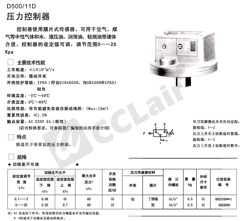0819100,0819500,0819200,0819600,壓差開關普通 D520/7DD切換差不可調(diào)