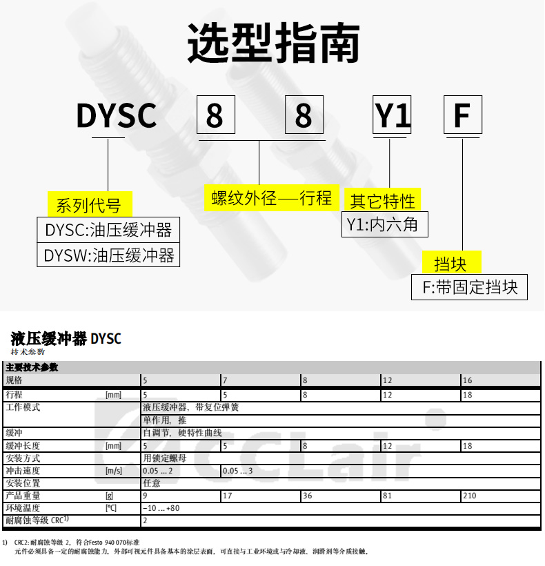DYSW4-6Y1F,DYSW5-8Y1F,DYSW7-10Y1F,DYSW8-14Y1F,DYSW10-17Y1F,DYSW12-20Y1F, 油壓緩沖器DYSW