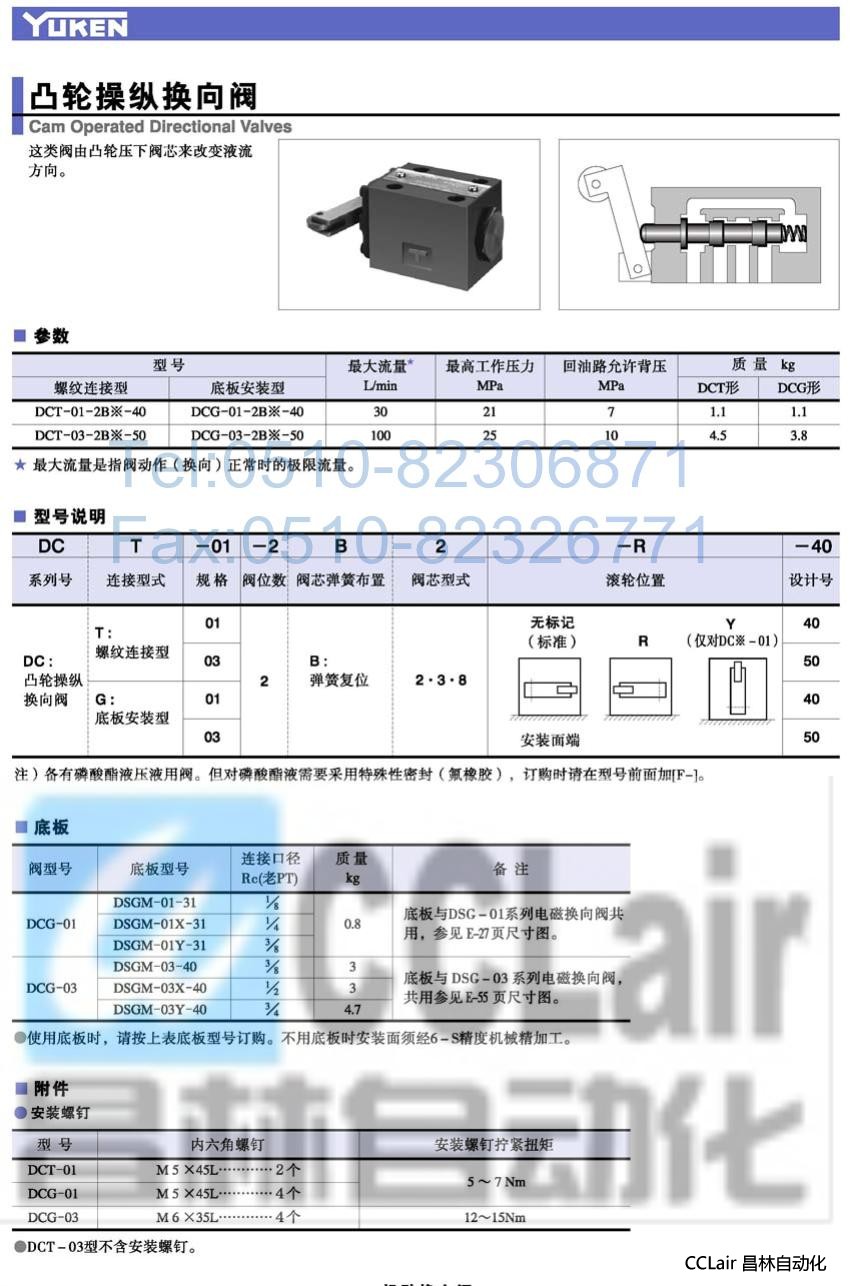 DCG-03-2B3-R-40,DCG-03-2B3-Y-40,DCG-03-2B3-40,凸輪操縱換向閥,榆次油研凸輪操縱換向閥,YUKEN凸輪操縱換向閥