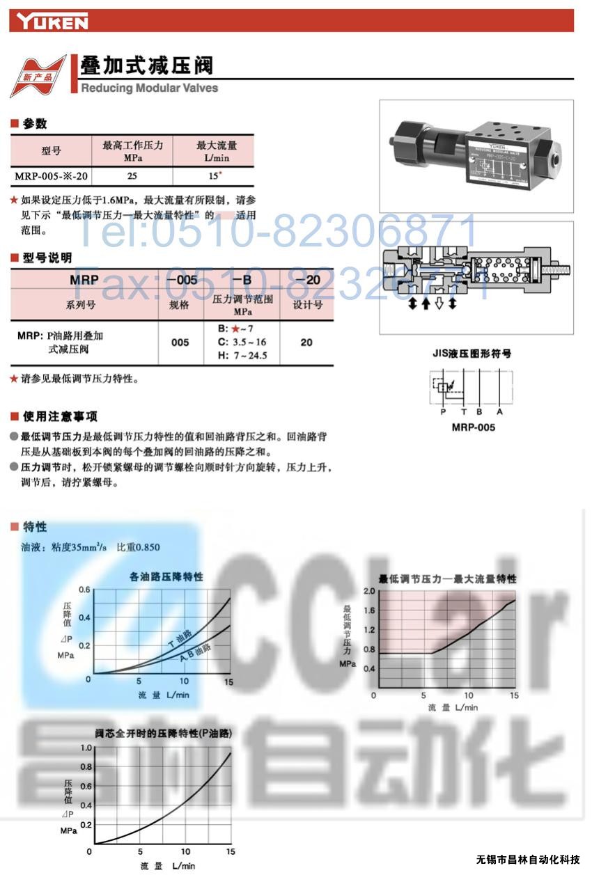 MRP-005-B-20,MRP-005-C-20,MRP-005-H-20,疊加式減壓閥,榆次油研疊加式減壓閥,YUKEN疊加式減壓閥