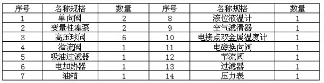 系統(tǒng)裝有兩套可調(diào)流量微量計(jì)量泵,正常工作時(shí),油泵一臺(tái)工作,一臺(tái)備用,在特殊需要時(shí)亦可允許同時(shí)起動(dòng)兩泵,系統(tǒng)最高壓力為10MPa,最低壓力為4MPa,油缸上行速度由變量微量油泵來調(diào)定,油缸下行時(shí)的速度由節(jié)流閥來調(diào)定,油溫是由裝在油箱上的雙金屬電接點(diǎn)溫度來控制電加熱器的關(guān)閉,油站系統(tǒng)有一臺(tái)精度