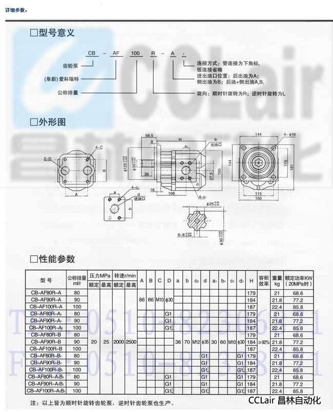 CB-AF80R-A,CB-AF90R-A,CB-AF100R-A,CB-AF80R-A1,齒輪泵