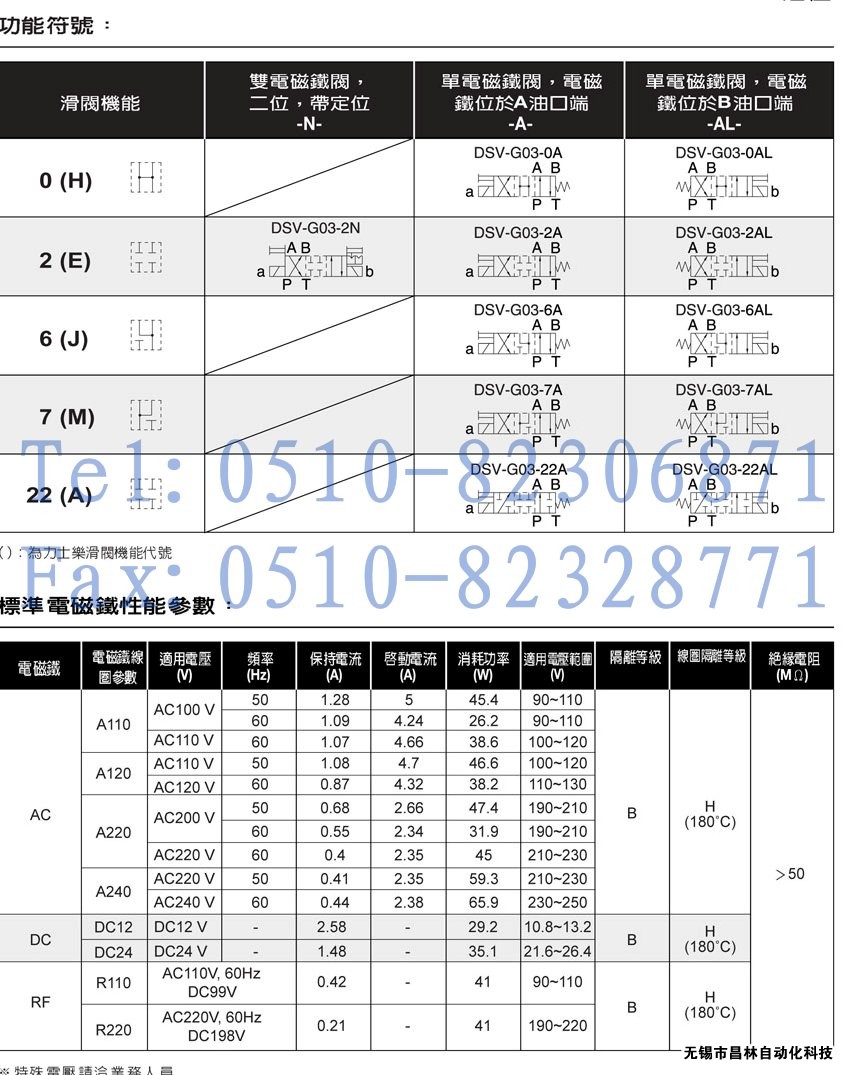 DSV-G03-5A,DSV-G03-5AL,DSV-G03-5B,DSV-G03-5BL,DSV-G03-5C,DSV-G03-5N,濕式電磁鐵操作換向閥