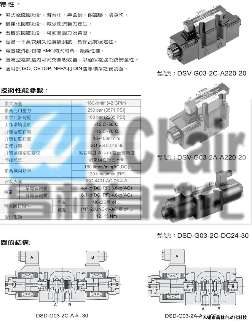 DSV-G03-1A,DSV-G03-1AL,DSV-G03-1B,DSV-G03-1BL,DSV-G03-1C,DSV-G03-1N,濕式電磁鐵操作換向閥