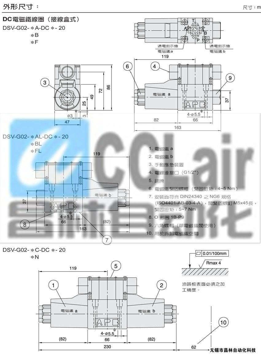 DSD-GO2-3C,DSD-GO2-4C,DSD-GO2-5C,DSD-GO2-6C,DSD-GO2-7C,DSD-GO2-8C,濕式電磁鐵操作換向閥