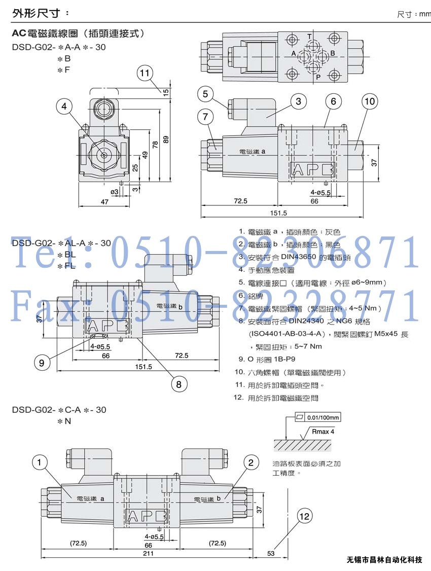 DSD-GO2-0A,DSD-GO2-1A,DSD-GO2-2A,DSD-GO2-3A,DSD-GO2-4A,DSD-GO2-5A,濕式電磁鐵操作換向閥