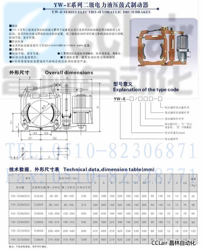 YW-E250/E50,YW-E315/E50,YW-E315/E80,二級電力液壓鼓式制動器