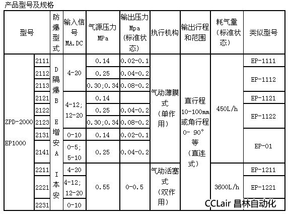 例:EP1111d:表示直行程單作用,配氣動(dòng)薄膜式輸入信號(hào):4-20mADC
