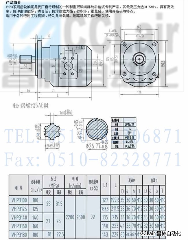 VHP3100,VHP3125,VHP3140,VHP3160,VHP3180,齒輪油泵