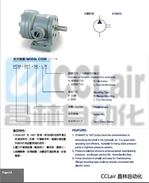 VCM-50T-26-FR,VCM-50T-36-FR,VCM-150T-48-FR,VCM-150T-61-FR,定量葉片泵 |