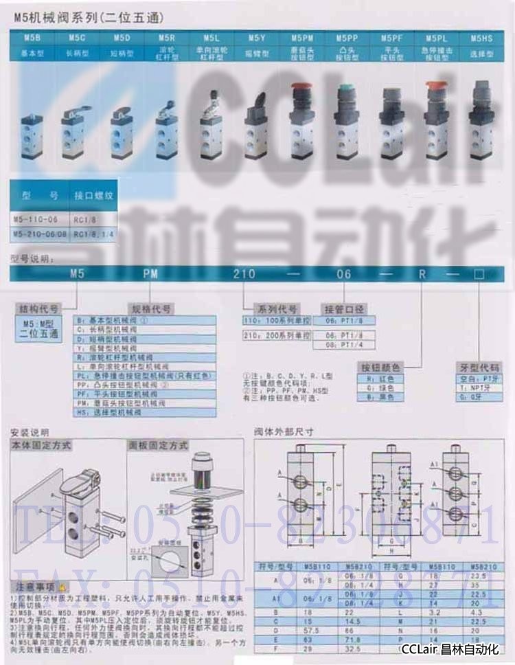 M5HS110-06,M5HS210-08,M5HS210-06,二位五通機(jī)械閥
