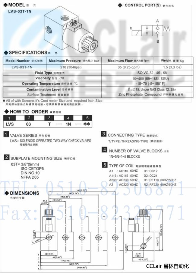 LVS-03T-1N, 電磁變向止逆閥,