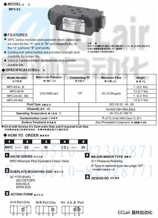 MPC-02-A,MPC-02-B,MPC-02-W,引導(dǎo)止逆閥,