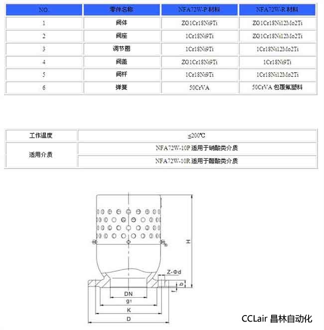NWA72W真空負(fù)壓安全閥主要零部件材料