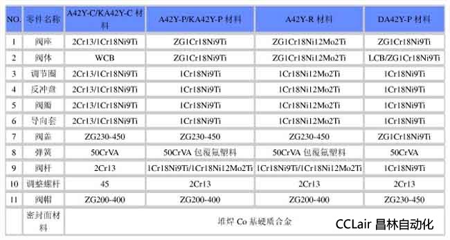 主要零部件材料