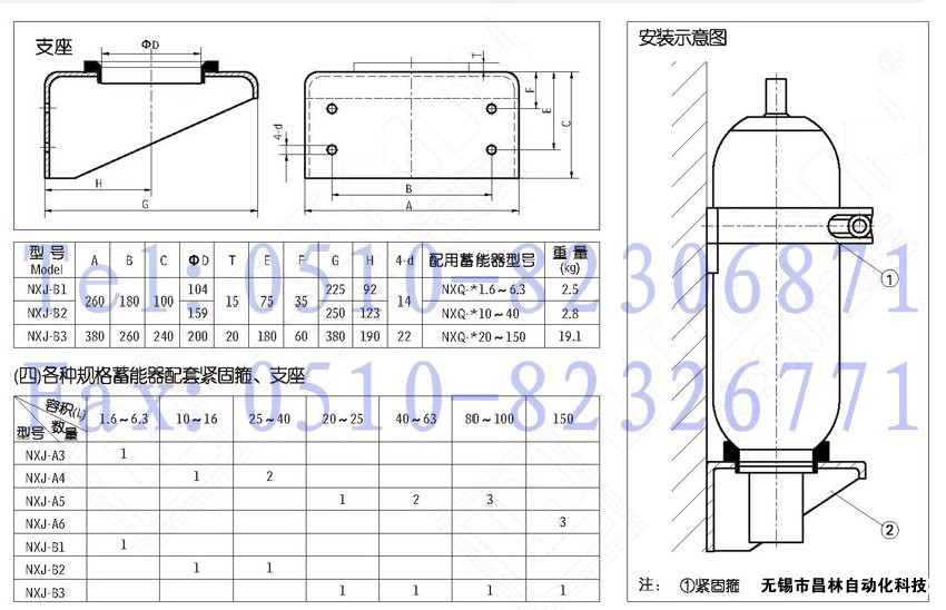NXJ-A3,NXJ-A4,NXJ-A5,NXJ-A6,NXJ-B1,NXJ-B2,NXJ-B3,蓄能器支座及緊固箍,