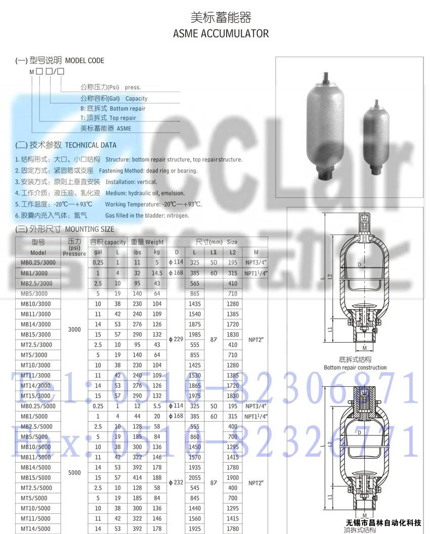 MB0.25/3000,MB1/3000,MB2.5/3000,MB5/3000,MB10/3000,MB11/3000,MB14/3000,美標(biāo)蓄能器,