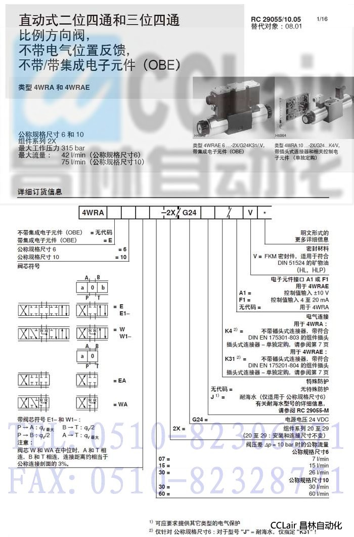 4WRAE6WA15-2X/G24N9K31/F1V,4WRAE6WA30-2X/G24K31/A1V,,比例方向閥,力士樂REXROTH,德國力士樂 |
