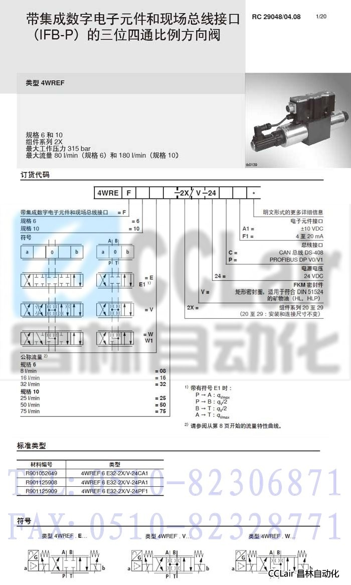4WREF6E32-2X/V-24CA1,4WREF6E32-2X/V-24PA1,4WREF6E32-2X/V-24PF1,比例方向閥,力士樂REXROTH,德國力士樂 |