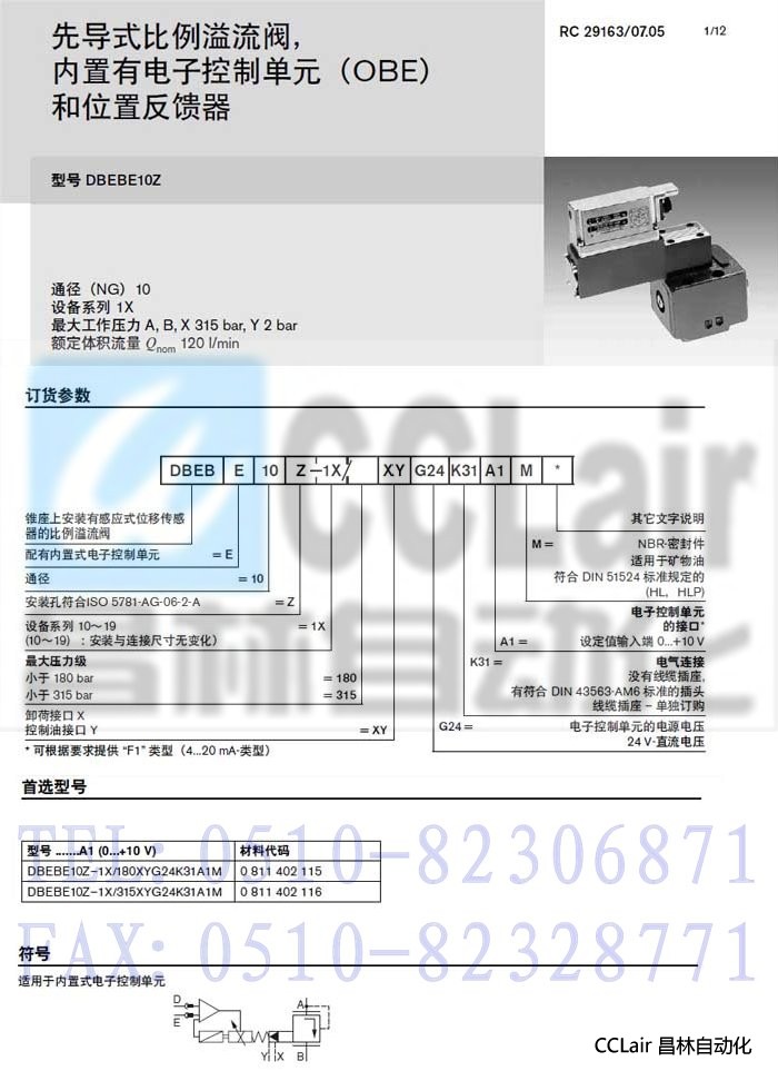 DBEBE10Z-1X/180XYG24K31A1M,DBEBE10Z-1X/315XYG24K31A1M,先導(dǎo)式比例溢流閥,力士樂(lè)REXROTH