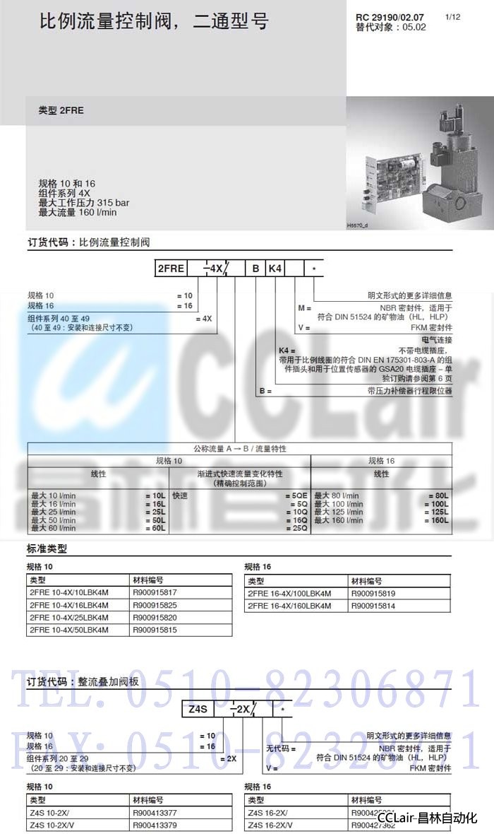 2FRE10-4X/10LBK4M,2FRE10-4X/10LBK4V,2FRE10-4X/16LBK4M,比例流量控制閥,力士樂REXROTH,德國力士樂 |