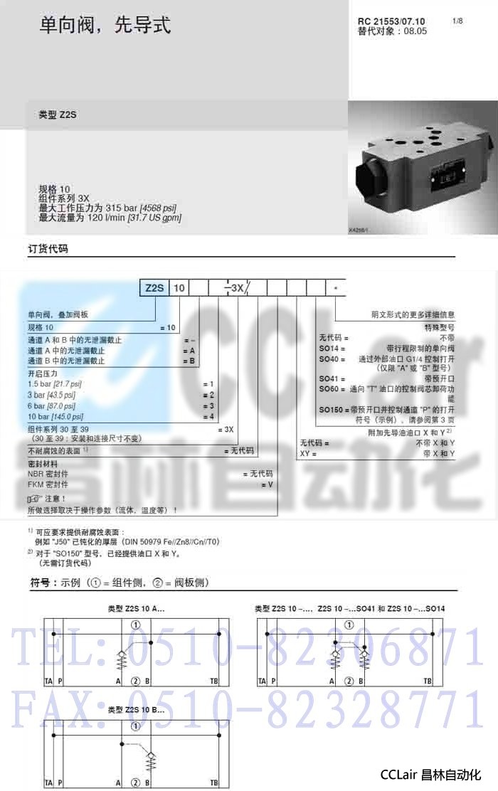 Z2S10-1-3X/,Z2S10-1-3X/V,Z2S10-2-3X/,Z2S10-2-3X/V,單向閥,力士樂REXROTH,德國力士樂 |