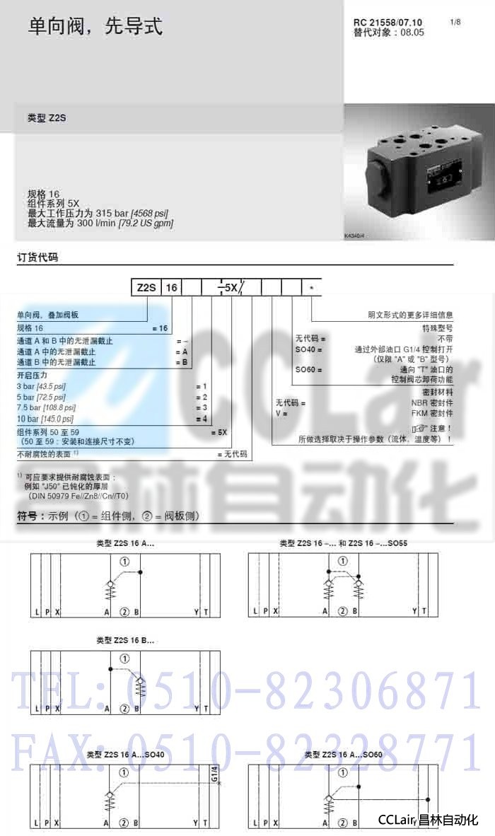 Z2S16-1-5X/,Z2S16-1-5X/V,Z2S16-2-5X/,Z2S16-2-5X/V,單向閥,力士樂REXROTH,德國力士樂