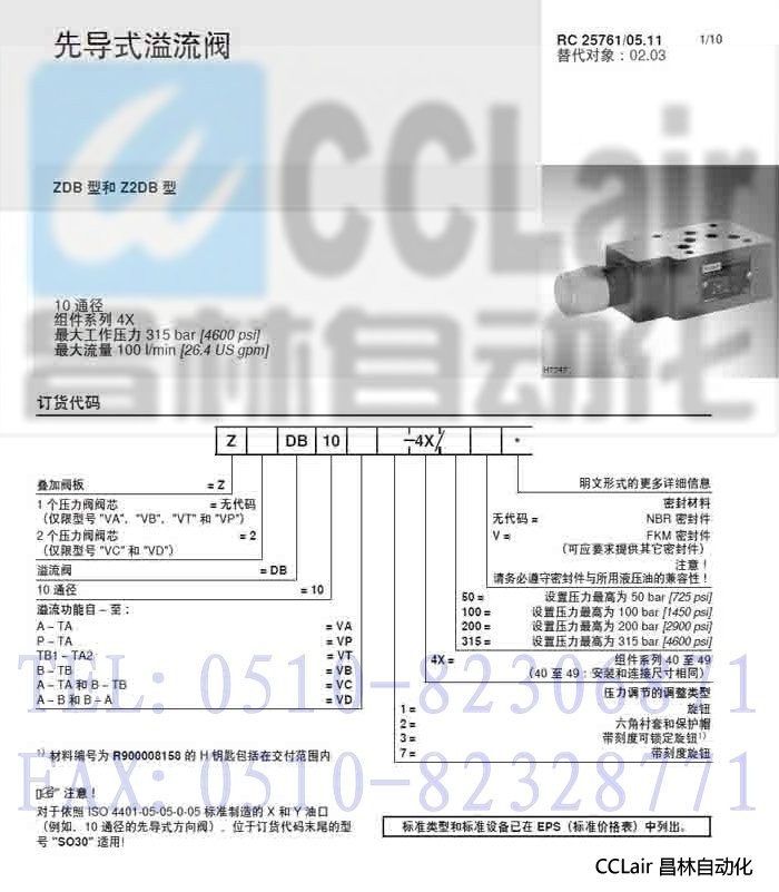 Z2DB10VD3-4X/315V,Z2DB10VD7-4X/200V,Z2DB10VD7-4X/315V, ,先導(dǎo)式溢流閥,力士樂REXROTH,德國力士樂