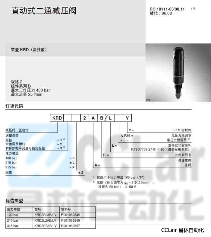 KRD2F2AB/LV,KRD2L2AB/LV,KRD2P2AB/LV,直動式減壓閥,力士樂REXROTH,德國力士樂