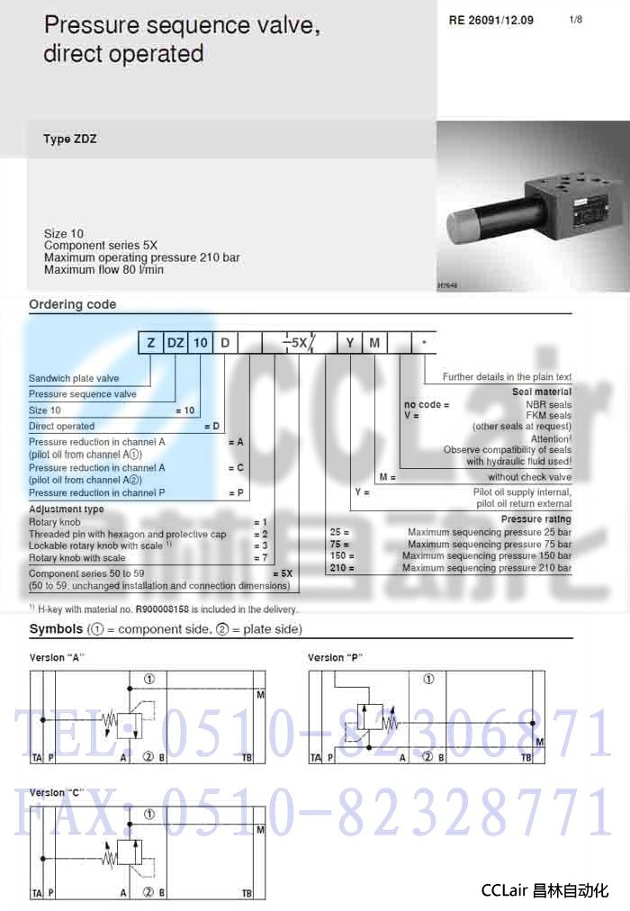 ZDZ10DP2-5X/210YM,直動(dòng)式壓力順序閥,力士樂REXROTH,德國(guó)力士樂