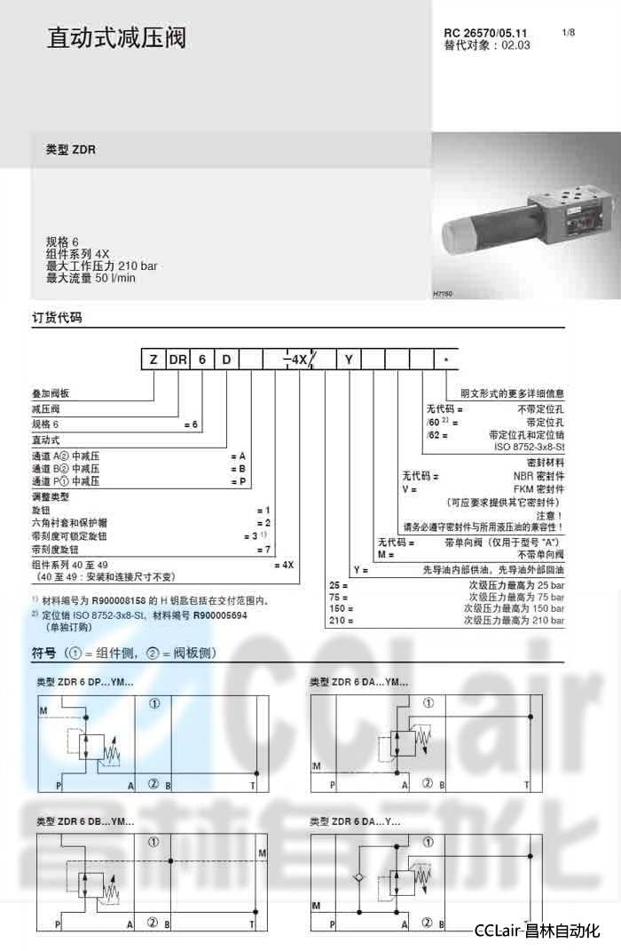 ZDR6DP2-4X/75YM,ZDR6DP2-4X/75YM/60,ZDR6DP2-4X/75YMV 直動式減壓閥,力士樂REXROTH,德國力士樂 |