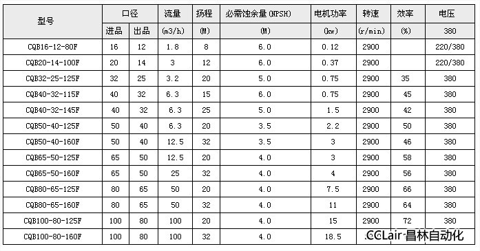 CQB40-32-145F,CQB50-40-125F,CQB50-40-160F,CQB65-50-125F,