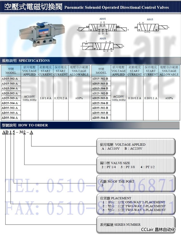AD15-302-A,AD15-303-A,AD15-304-A,AD25-302-A,AD25-303-A,空壓式電磁切換閥 |