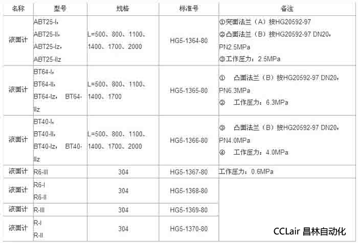 液面計主要技術(shù)參數(shù)