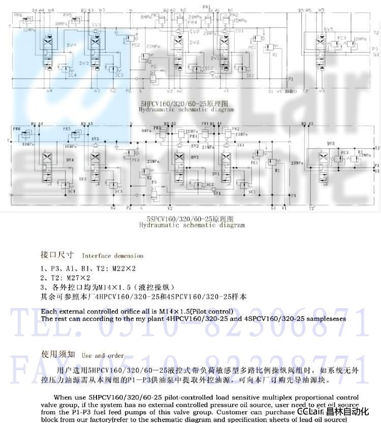 5HPCV160/320/60-25,5SPCV160/320/60-25,帶負荷敏感型多路比例操縱閥組
