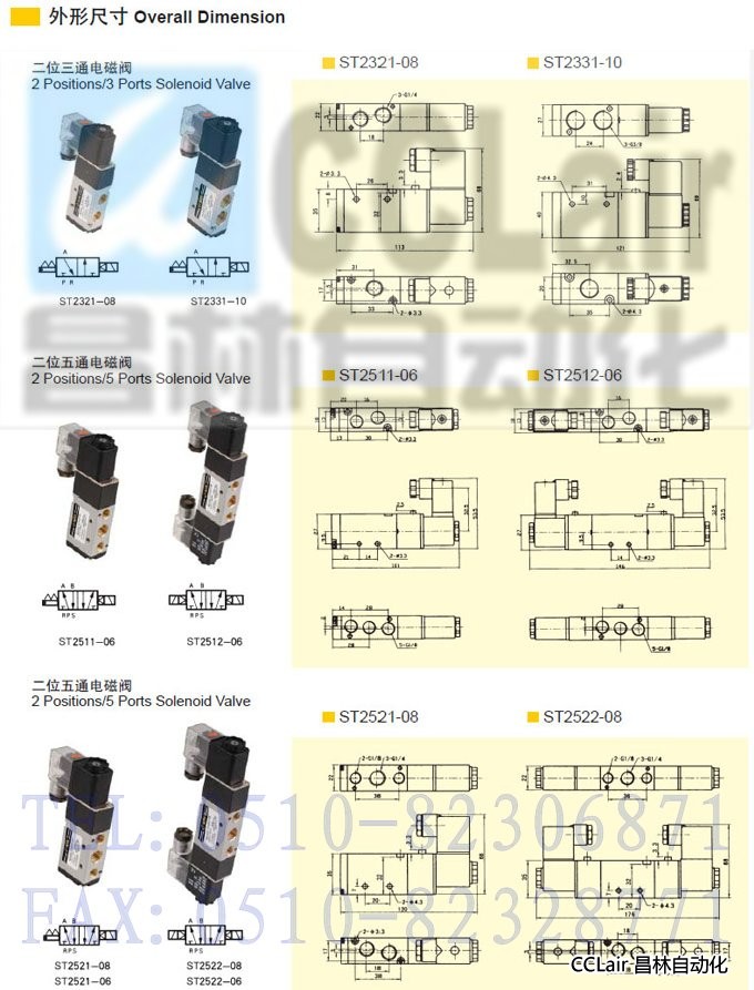 ST2511-06,ST2512-06,ST2521-08,ST2522-08,ST2531-10,ST2532-10,二位五通電磁閥