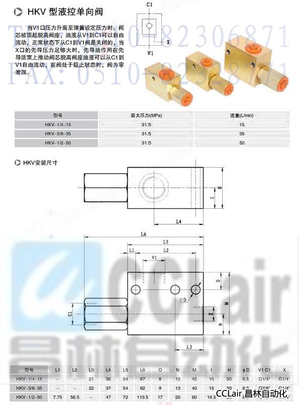 HKV-1/4-15,HKV-3/8-35,HKV-1/2-50,液控單向閥