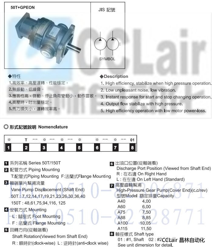 50TT-7-L,50TT-12-L,50TT-14-L,50TT-17-L,50TT-19-L,50TT-21-L,定量高低壓組合泵
