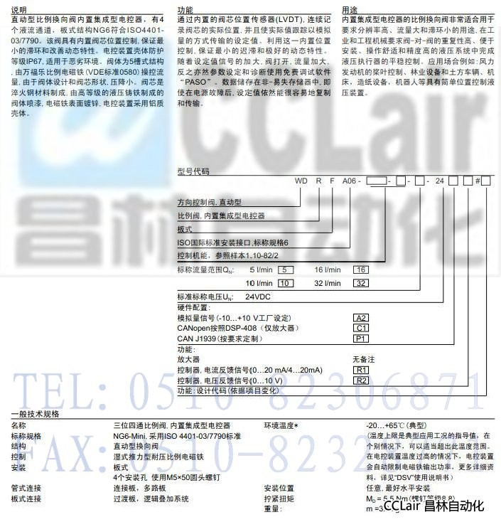 WDRFA06,WDRFA06-ACB,WDRFA06-ADB,比例換向閥(內(nèi)置集成型電控器和LVDT)