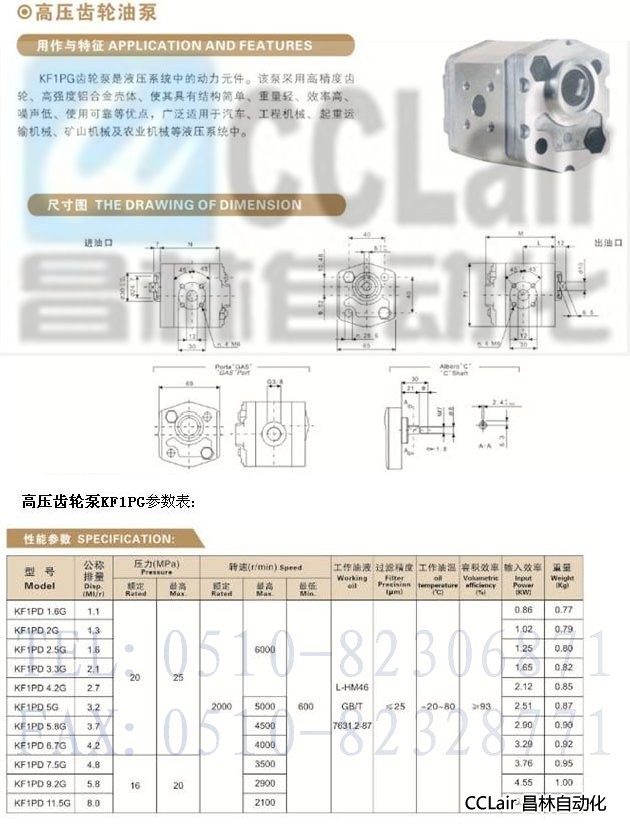 KF1PD 1.6G,KF1PD 2G,KF1PD 2.5G,KF1PD 3.3G,高壓齒輪油泵