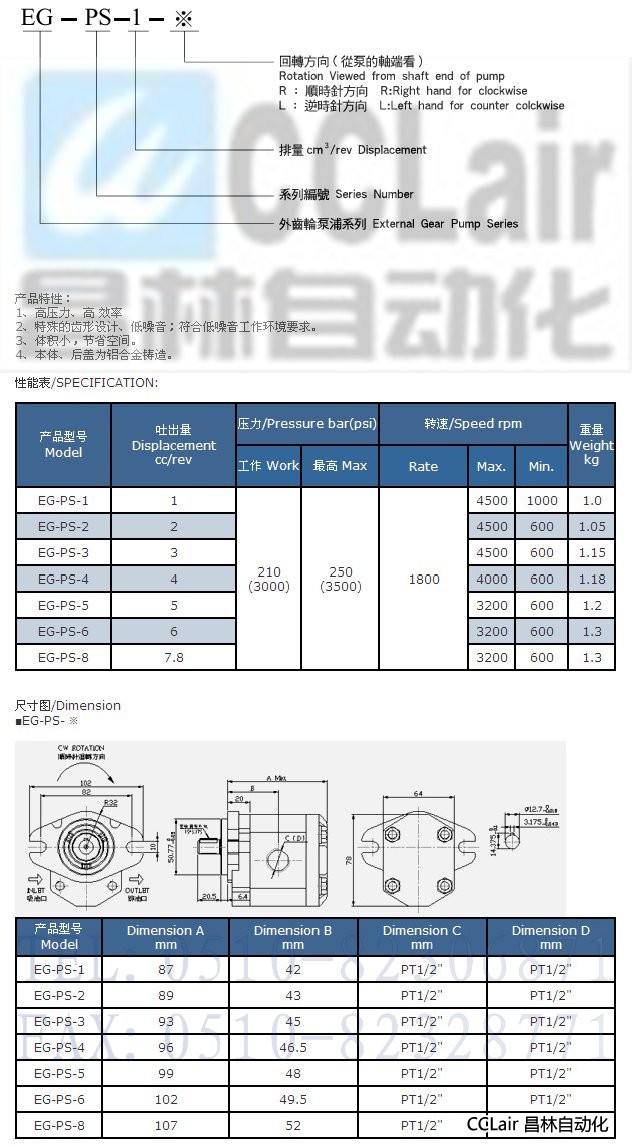EG-PS-1,EG-PS-2,EG-PS-3,EG-PS-4,外齒輪泵浦