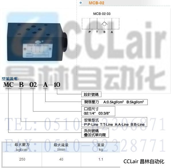 MCB-02-A-10,MCB-02-B-10,疊加式單向閥