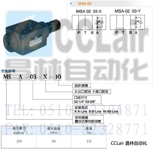 MSA-03-X-10,MSA-03-Y-10,疊加式單向節(jié)流閥