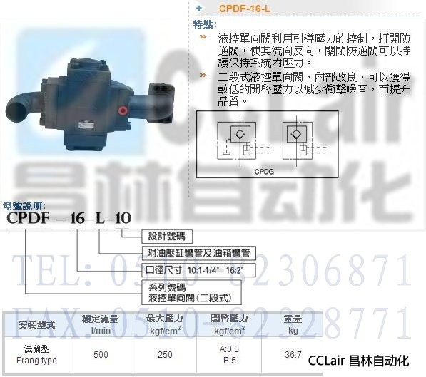 CPDF-16-L-10,液控單向閥
