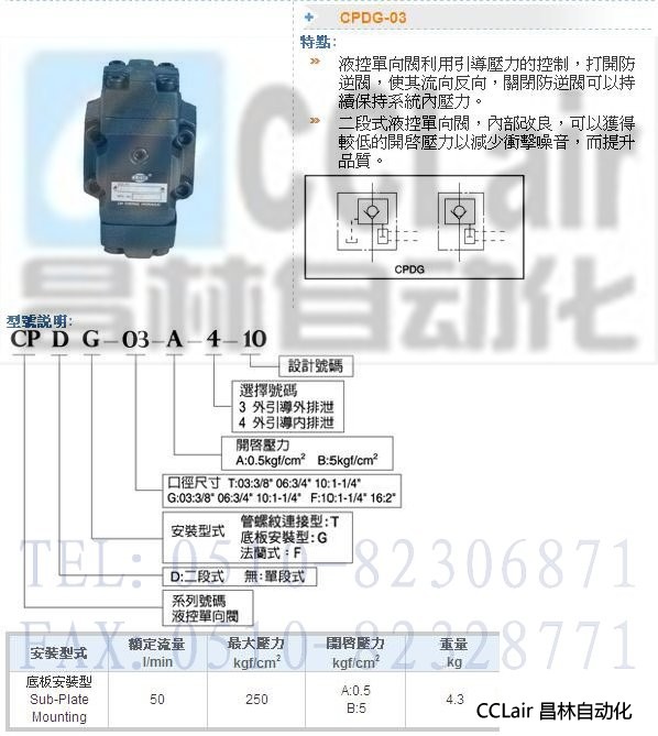 CPDG-03-A-4-10,CPDG-03-A-3-10,液控單向閥
