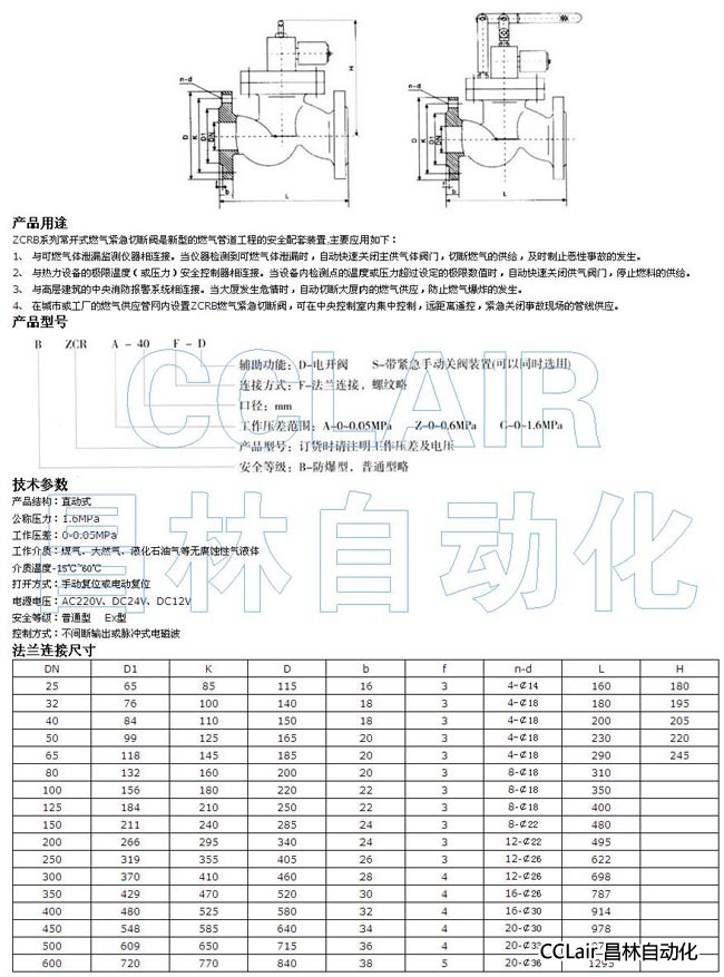 ZCRA-65,ZCRA-80,ZCRA-100,ZCRA-125,ZCRA-150,常開式燃?xì)饩o急切斷閥